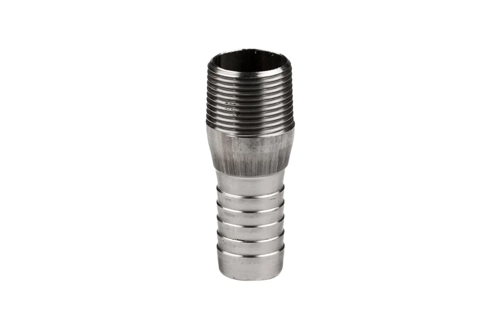 CNP tipo antgalis su išoriniu kūginiu NPT sriegiu, pagamintas iš cinkuotos plieninės, su „uodega“ žarnai. Skirtas guminių ir plastikinių pramoninių žarnų prijungimui. Montuojamas naudojant juostas, apkabas arba specialias CNFL tipo skardines suspaudžiamąsias įvores. Medžiaga: AISI 316 plienas.