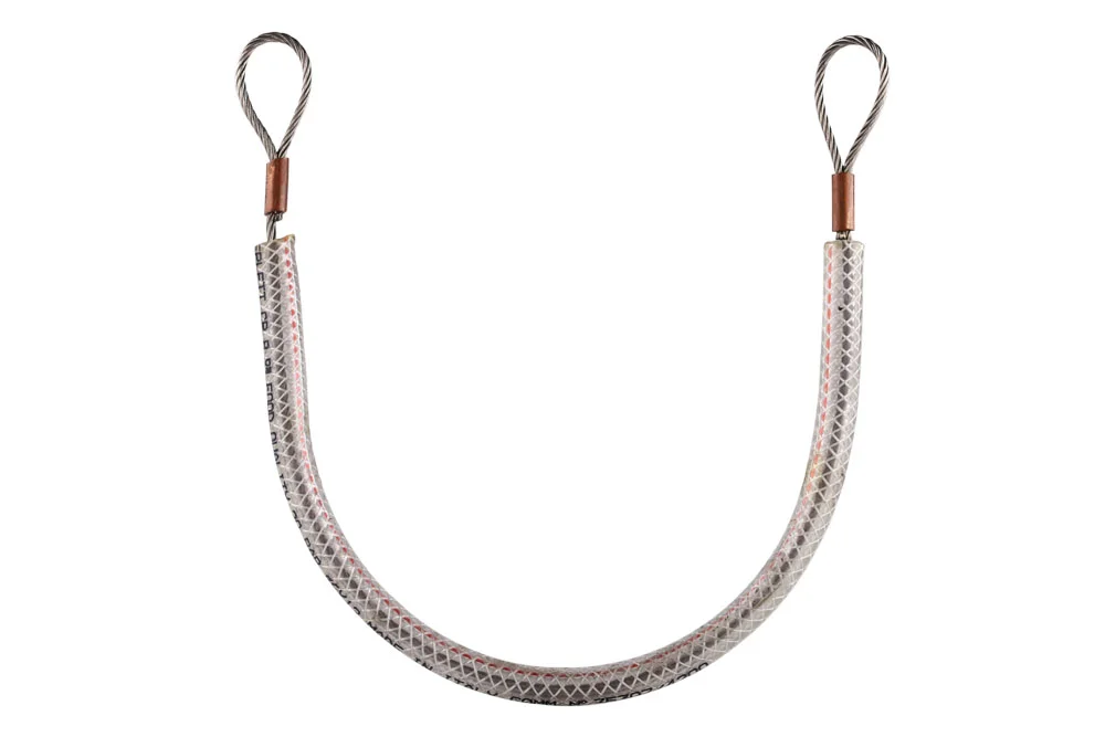 Tvirtinimo lynas (skirtas slėginiams žarnoms) iš nerūdijančio plieno, padengtas plastiku. Lyno skersmuo: 3 mm.