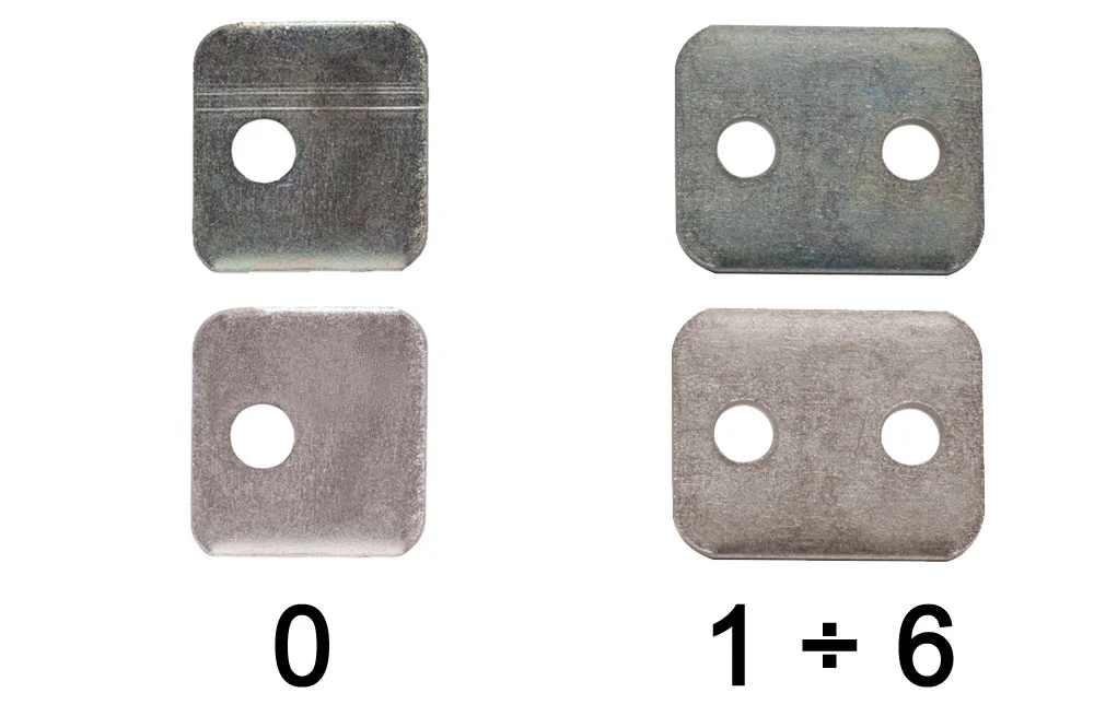 Viršutinė plokštelė DIN 3015 standarto apkabos montavimui, pilnas tipas 101. Matmenų grupei 0 yra viena skylė varžtui. Matmenų grupėms 1 ÷ 6 yra dvi skylės varžtams. Medžiaga: anglinis plienas, cinkuotas arba AISI 316L plienas.