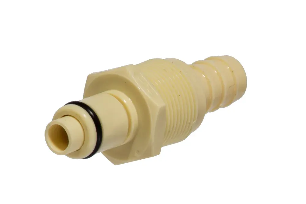 Vidutinio dydžio greitos jungties pertvarinis kištukas su žarnai skirta antgaliu, skirtas plovimo sistemoms, dejonizuoto vandens filtracijai, pramoniniams automatams, nuotėkio aptikimui ir pan. Ilgis L [mm] – bendras ilgis. Medžiaga: polipropilenas. Sandarinimas: EPDM o-žiedas. Darbinis slėgis: iki 8,3 bar. Darbinė temperatūra: nuo 0 °C iki +71 °C.